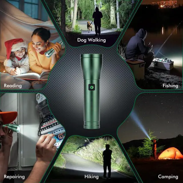 [USB C Charging & Digital Power Indicator] With a large-capacity battery and a fast-charging Type-C interface, rechargeable flashlight can be fully charged efficiently and work for 4-12 hours in different lighting modes.