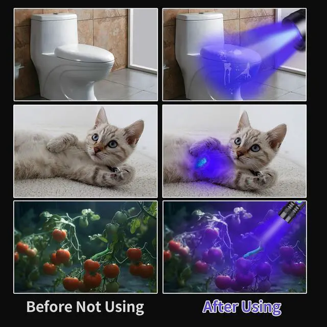 - Focusable Black Light Flashlights - Just push and pull the lens to stretch and adjust the focus, more convenient to mark pet dried urine within at least 30-foot distance.
