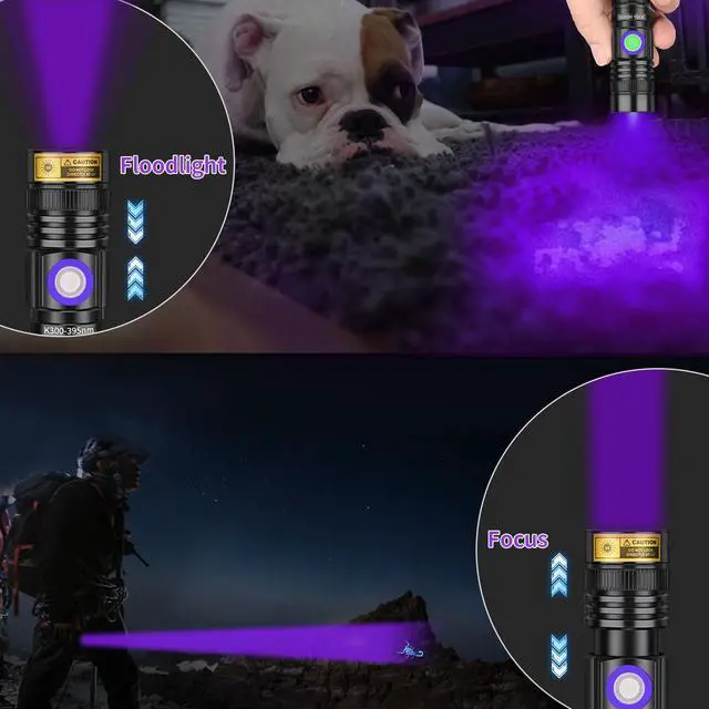 - Focusable Black Light Flashlights - Just push and pull the lens to stretch and adjust the focus, more convenient to mark pet dried urine within at least 30-foot distance.