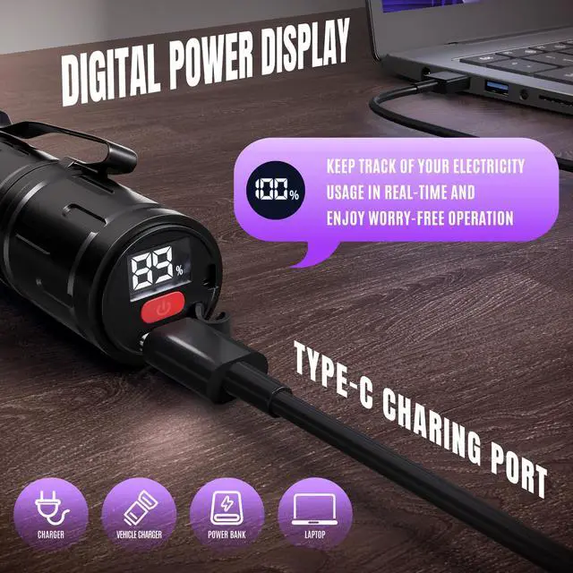 USB-C Charging Port — Direct charging design eliminates the hassle of frequent battery changes, saving money in the long run.