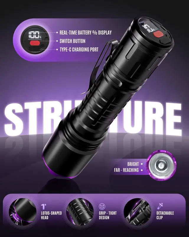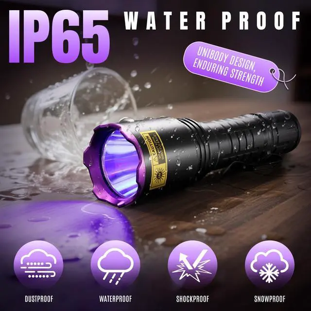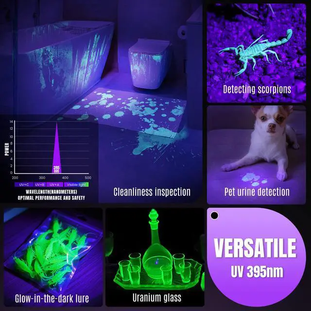 Upgraded High-Power 395nm UV Flashlight — Equipped with an upgraded LED chip emitting a wavelength of 395nm.