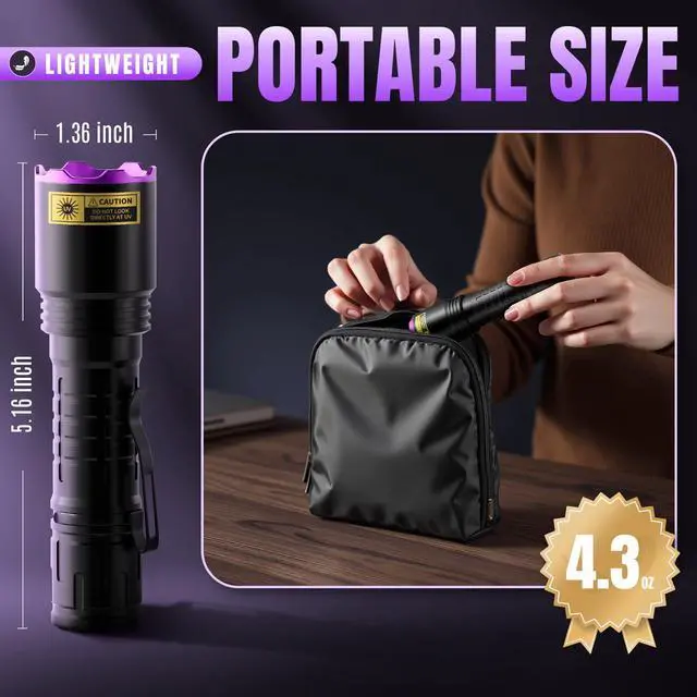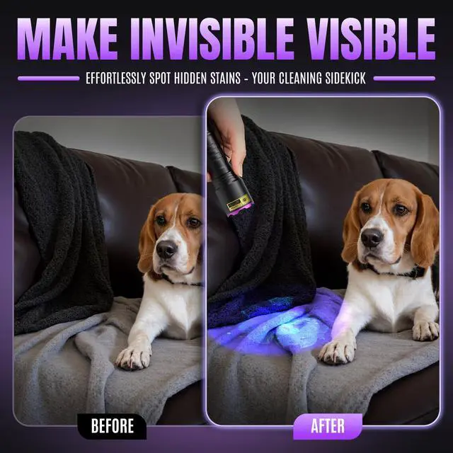 Powerful 395nm UV Light Source — Effortlessly detects various stains.