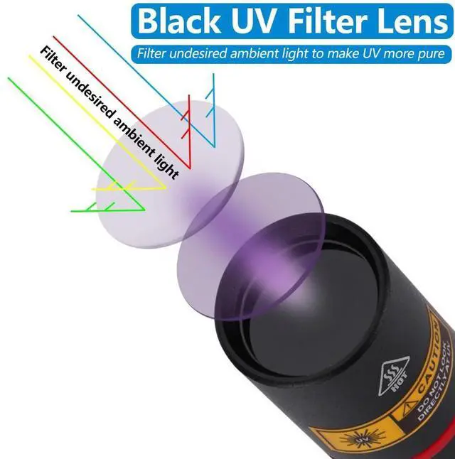- Equipped with hard toughened black filter optical lens that can filter out foreign light from the environment, very little visible light, which makes the ultraviolet light purer