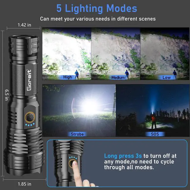 Goreit is a professional outdoor lighting manufacturer with over 10 years of LED torch design, production and sales experience. We are brand sellers and we sell our torches all over the world. We are constantly striving to provide you with high quality lighting.