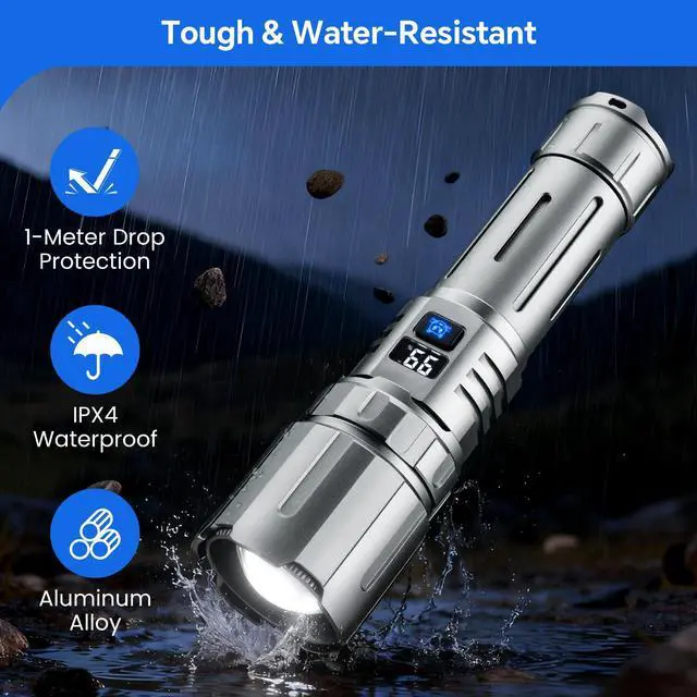 • 5000mAh Long Runtime & Power BankPowered by a high-capacity 5000mAh battery, this flashlight offers an exceptional up to 16 hours of runtime in moonlight mode. The built-in power indicator always keeps you informed. Featuring Type-C charging and a USB power bank function to charge your devices on the go, this handheld flashlight is not just a light source, but also your portable power station for extended trips and unexpected blackouts
