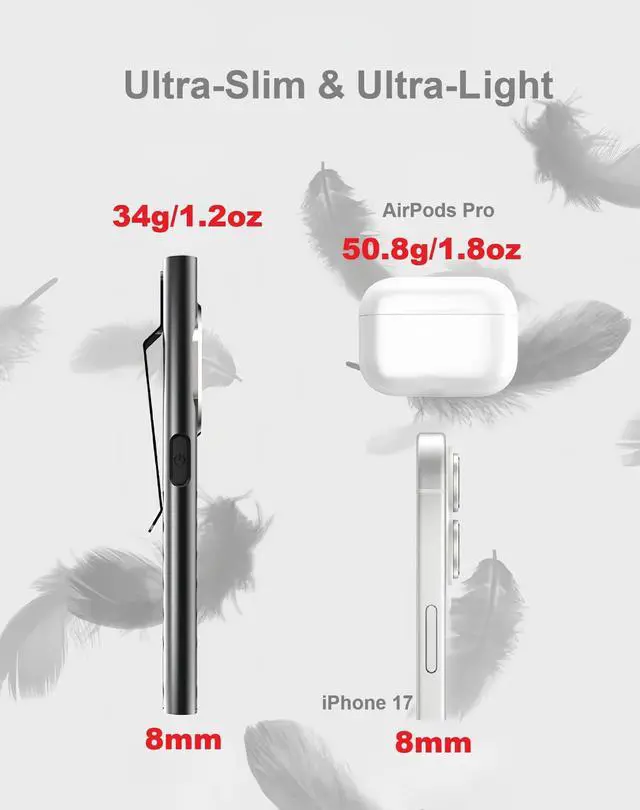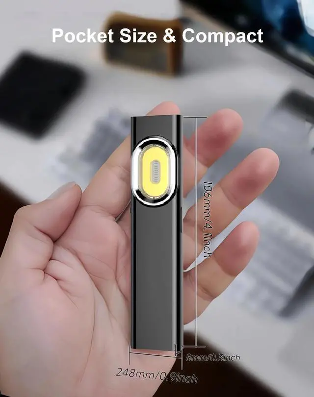 Ultra-Slim EDC FlashlightPocket size and ultra-slim at just 4.17"L x 0.98"W x 0.31"H, weighing only 1.2oz/34g. Slips easily into your pocket, toolkit, backpack, or emergency bag.
