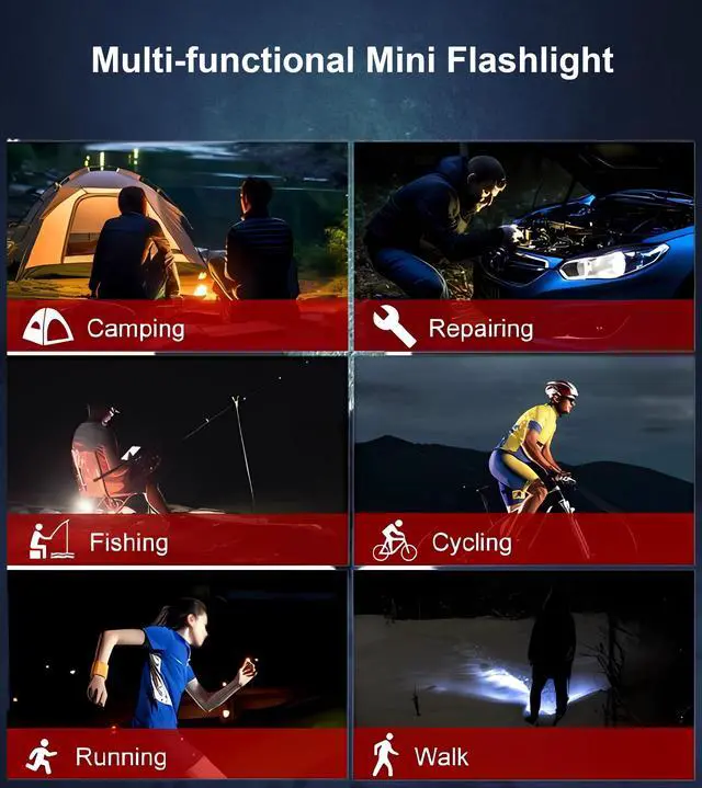 Super Bright LED FlashlightThis pocket flashlight delivers up to 600 lumens of brightness with dual lighting options: a main beam and a side COB light. Features 8 lighting modes, including adjustable brightness, strobe, and emergency flashes.
