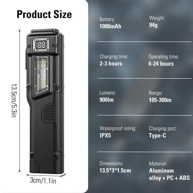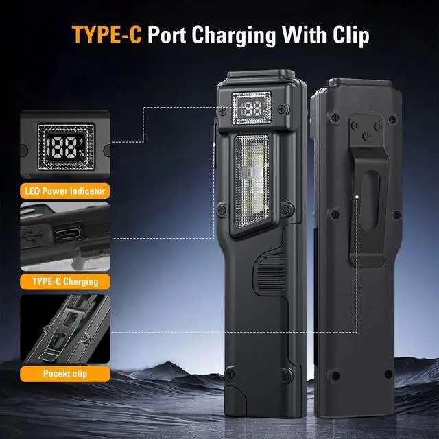 Rapid Type-C Charging & Reliable Power: Equipped with a 1000mAh high-capacity battery and modern Type-C charging (cable included), this rechargeable flashlight fully charges in 2-3 hours and delivers reliable runtime. Simply plug into any USB power source - laptop, car charger,etc