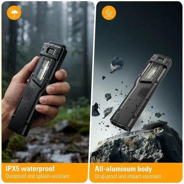 Secure Clip for True Everyday Carry: Ultra-Compact Profile 5.3" x 1.1" and 3.3oz, this flat flashlight slides seamlessly into pockets, backpacks, or tool kits. The spring-loaded clip grips firmly on belts, hats, or strapseven during vigorous movement. Perfect for mechanics, hikers, and security personnel needing hands-free access.