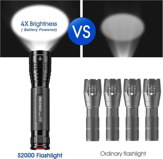 High Power, Adjustable Focus, Adjustable Light Modes, Durable, 30 hours, Aluminum, alkaline, 4, 19 L x 4.01 W x 4.01 H centimeters, 8.6 ounces, waterproof, S2000 Flashlight, RECHOO, S2000