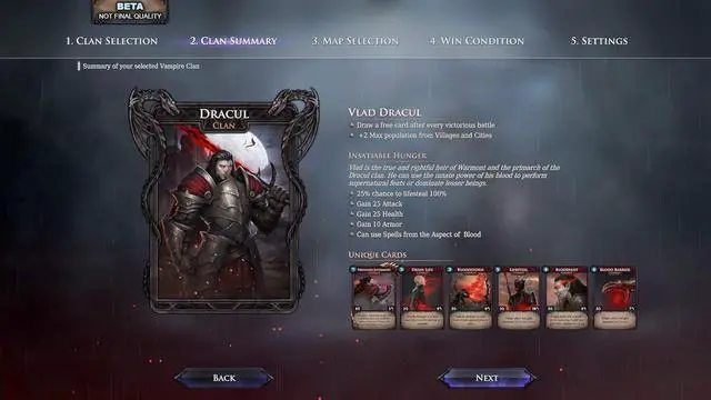 | Features | The Truth Unfolds: Discover the secrets of Nemire, and experience an enthralling story spanning across 12 meticulously crafted missions and four unique environments, from the perspective of four mighty vampire lords, each with their own goals and agendas. Discover the Bloodlines: Command one of three unique vampire clans with distinctive units, powers, gameplay mechanics and characters. Play as the bloodthirsty Dracul, the ancient Nosfernus or the mystical Moroia! Vampiric powers: Original card game elements enhance the gameplay and provide a refreshing take on the genre. Each clan and vampire lord has access to their own set of cards, which can be synergized into powerful combinations. Strategy & Tactics: Command your armies, recruit new units and unlock crucial technologies in the strategic Kingdom mode, and then put your tactical skills to the test in the action-packed Combat mode. Varied Content: Choose from three different gameplay modes, such as the story-driven Campaign, the open-world Sandbox, and the hard-fought Skirmish mode. |