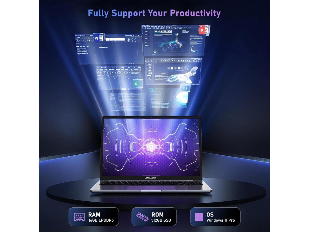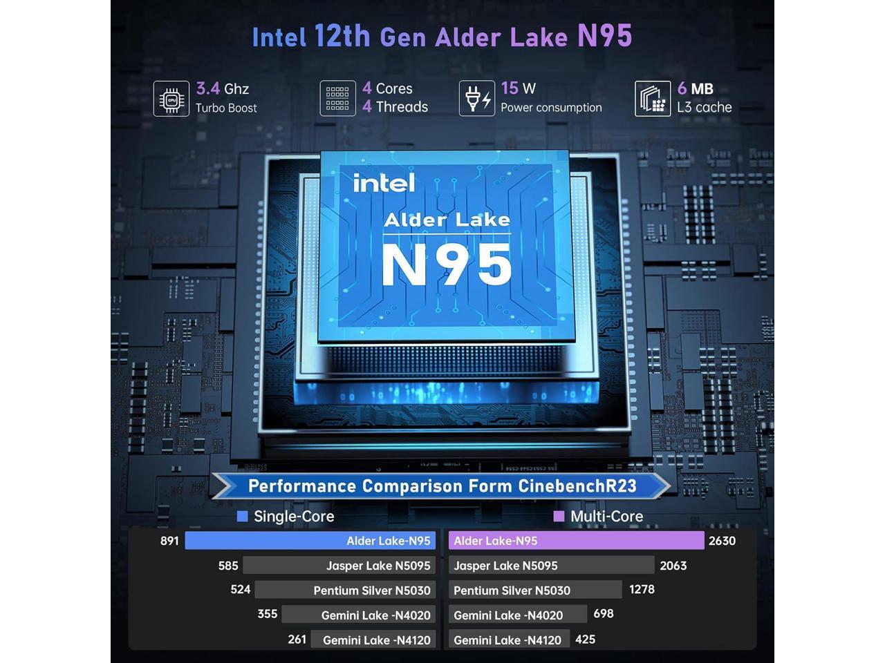 - 1.POWERFUL PEFORMANCE ## ACEMAGIC AX16 Laptop computer powered by latest Intel 12th generation Alder Lake N95 processor (4C/4T, 6MB Cache,15W, base frequency 1.7GHz, up to 3.4GHz, Intel7 Lithography), performance is much higher than Celeron N5095 or Pentium N5030. Built-in 16GB DDR5 and 512GB SSD for more powerful multitasking capabilities.