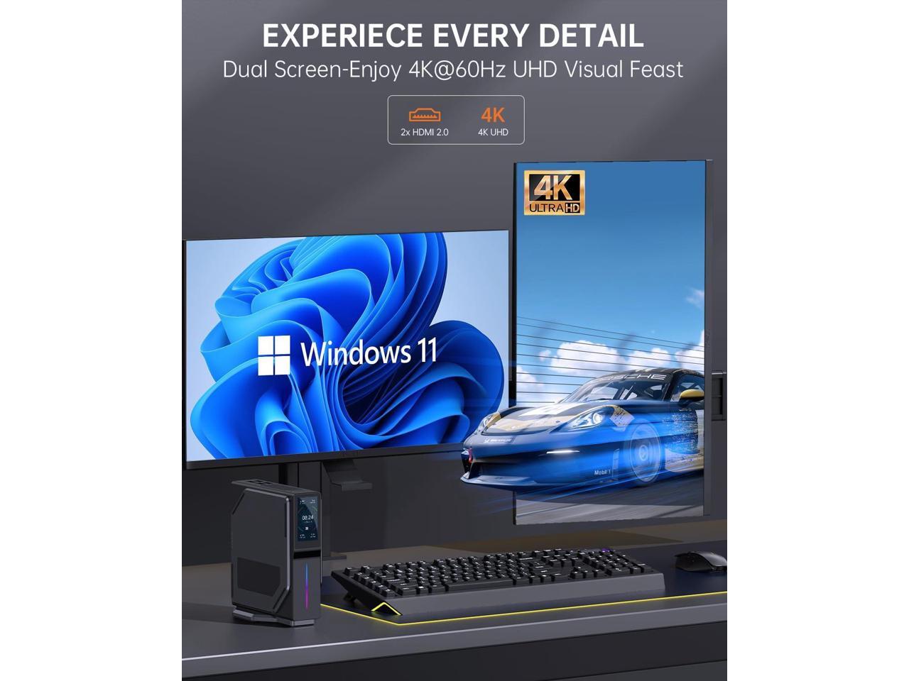 Office PC S1 Mini PC with LCD Screen, Intel Alder Lake-N100 (up to 3.4GHz), 16GB DDR4 1TB M.2 SSD Vertical Mini Computer, Mini Tower PC with RGB Light, WiFi 5/BT 4.2/4K UHD/Dual LAN for Home/Office.