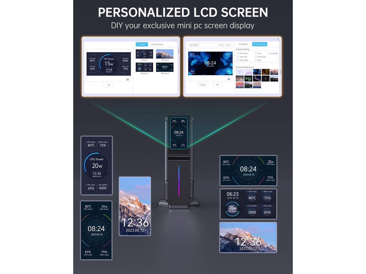 - 3.Unique LCD Display and RGB Lights -- The S1 Mini tower pc is equipped with a personalized LCD display.