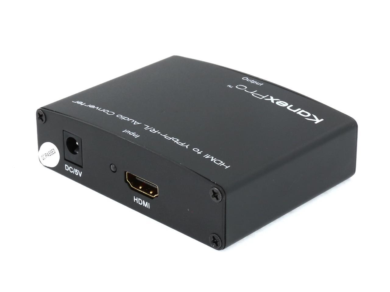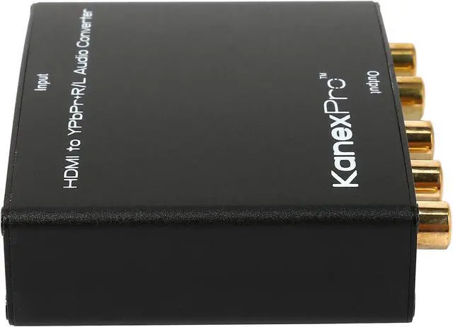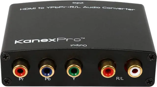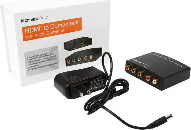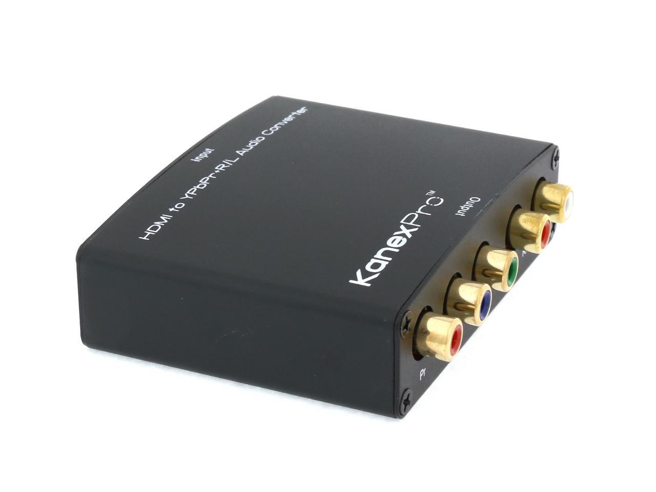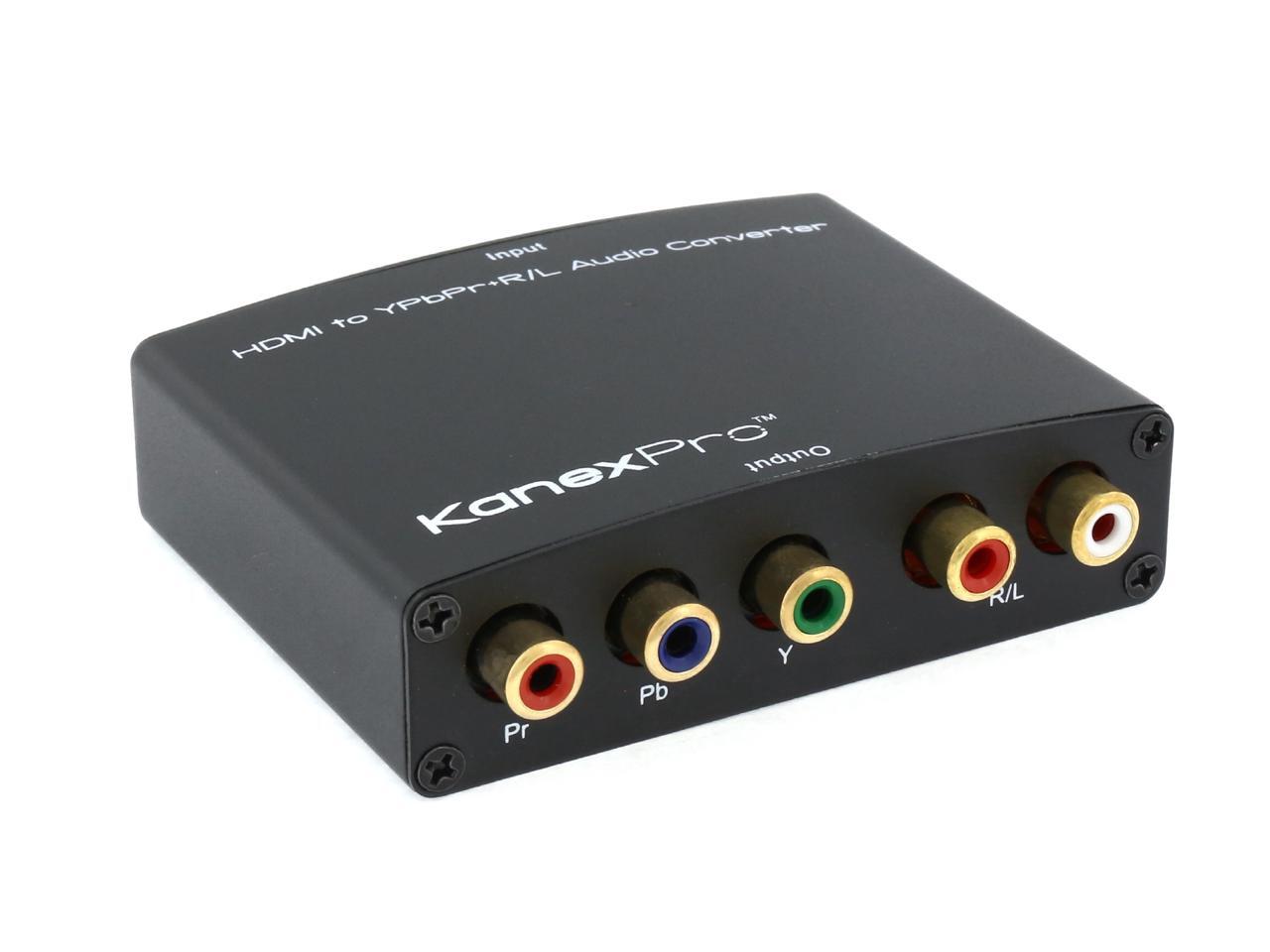 The KanexPro HDMI to Component video with audio converter is a classic fit for HDMI sources such as Game consoles, Apple TV2, Blu-ray players and cable boxes that needs seamless integration for today's home theater environments. It converts the HDMI input into analog component video for displays and projectors.