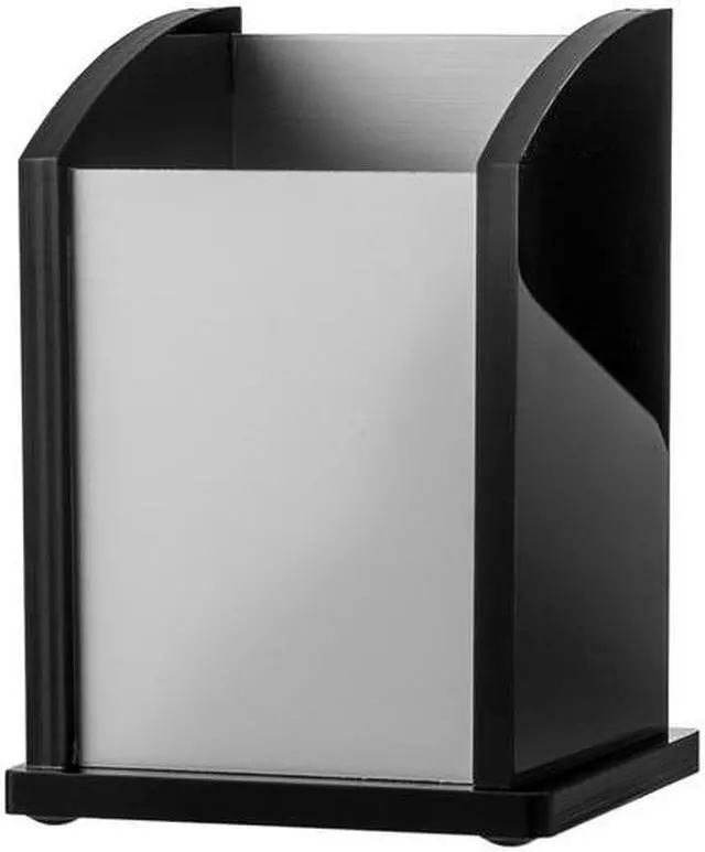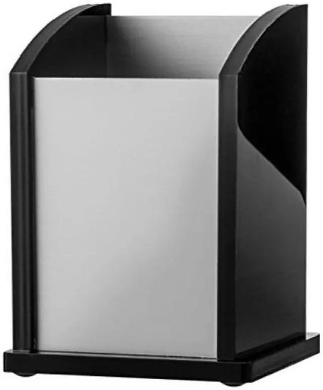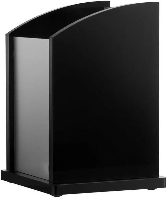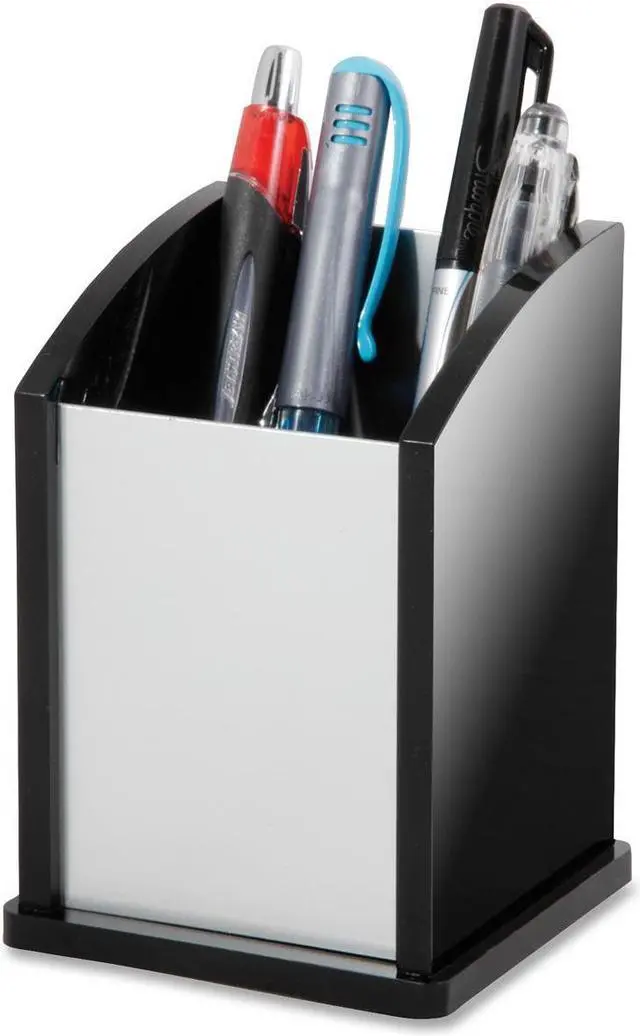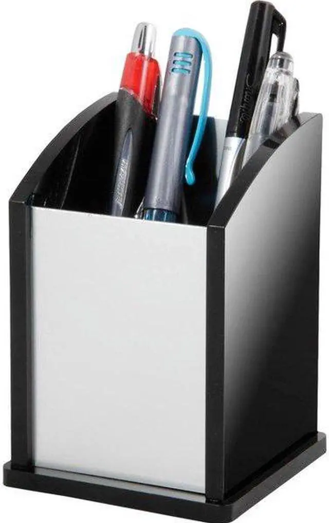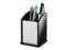 Sold as 1 EA. Pencil cup offers a spacious vertical storage for your writing utensils. Angled open design with a rectangular shape offers quick, easy access. Hand-crafted, stackable desk accessory is made of acrylic and aluminum.