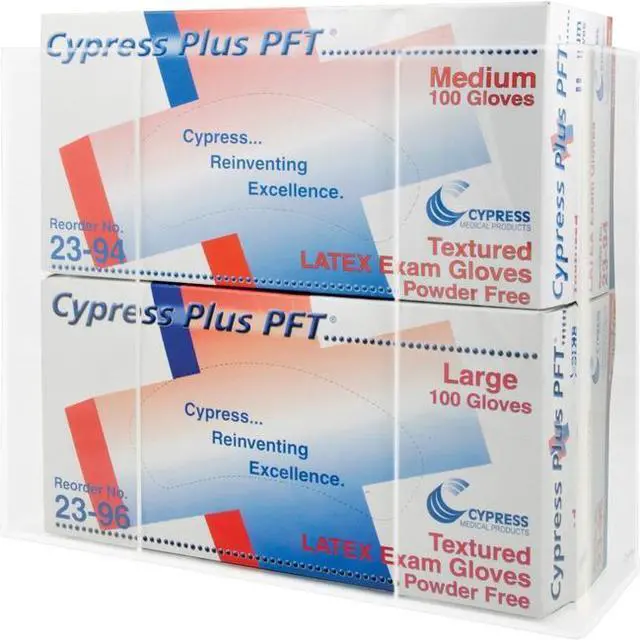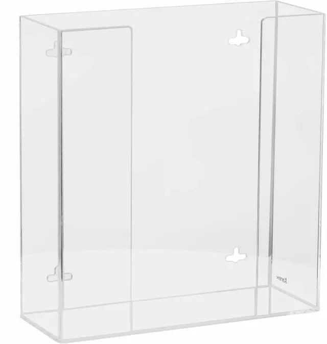 Acrylic glove box holder accommodates most all brands and sizes. Place on a countertop or mount to wall through predrilled holes (screws not included).