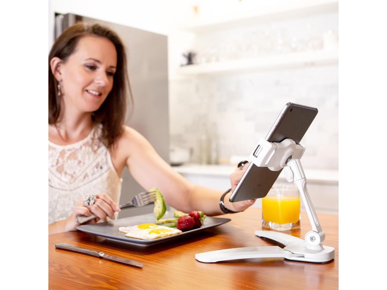 Kanto DS150W Universal Smartphone and Tablet Stand | Wall and Under Cabinet Mounting Bracket | Foldable Design | White