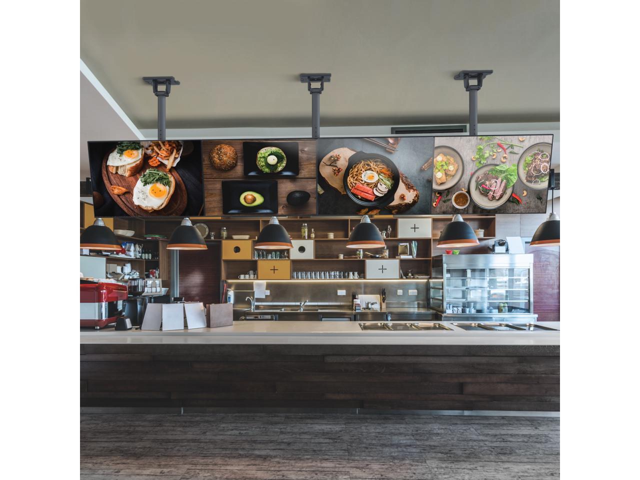 Kanto MBC311T Digital Signage/Menu Board Ceiling Mount System with Tilting Arms for 40-Inch to 60-Inch TVs | 3 TVs Wide | Perfect Alignment