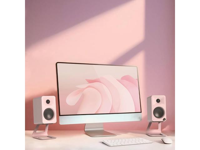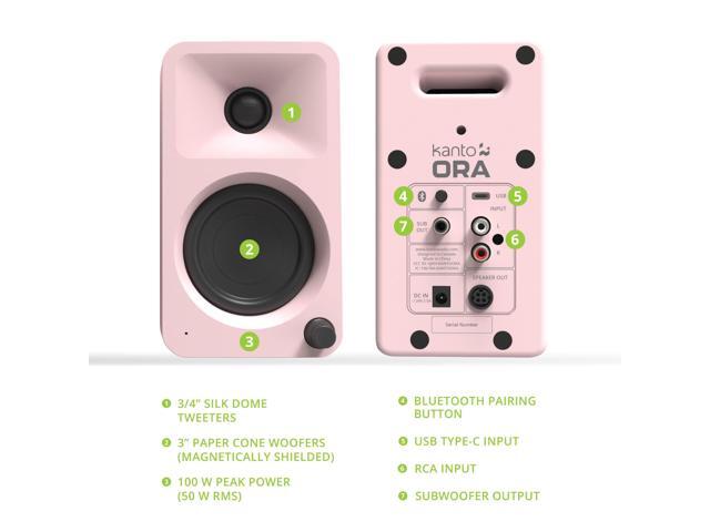 Kanto ORAMP 100W Powered Reference Desktop Computer Speakers with Bluetooth 5.0 and USB-C Input | Bi-Amplified | 100 Hz Automatic Crossover | Reference Quality Sound | Pair | Pink