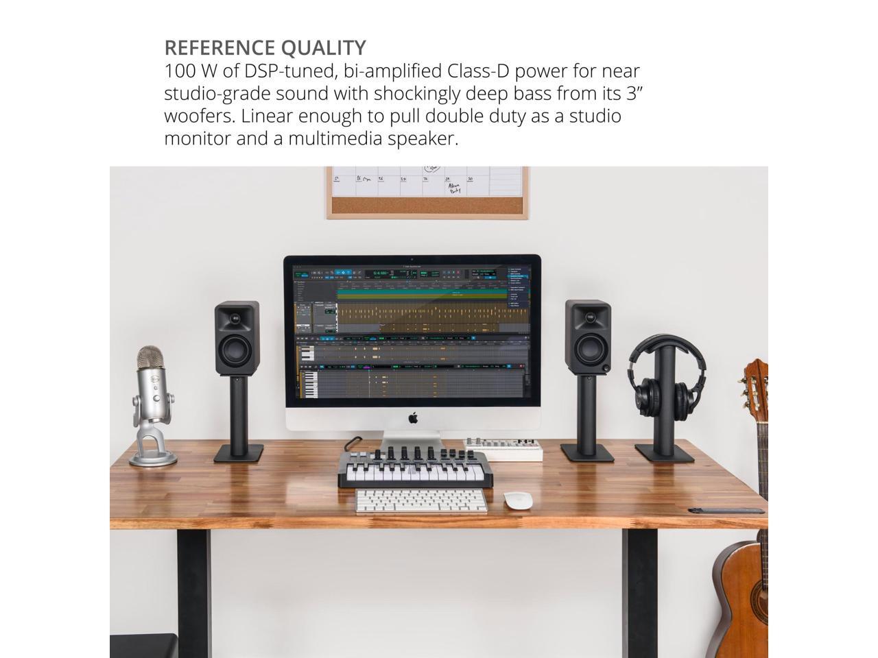 - REFERENCE QUALITY 100W of DSP-tuned, bi-amplified Class-D power for near studio-grade sound with shockingly deep bass from its 3 woofers. Linear enough to pull double duty as a studio monitor and a multimedia speaker.