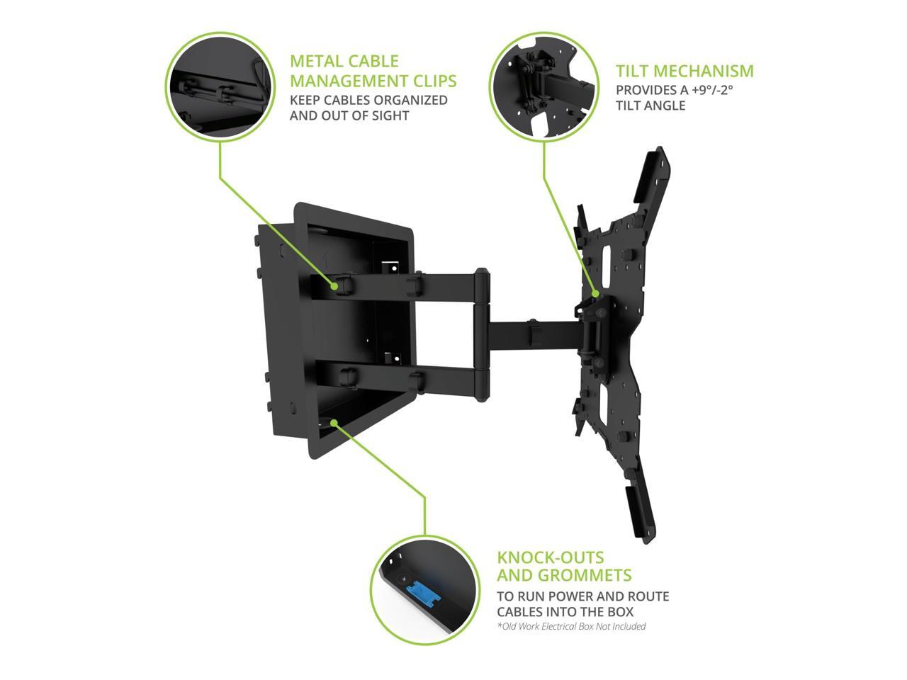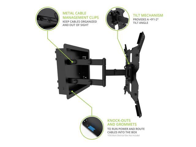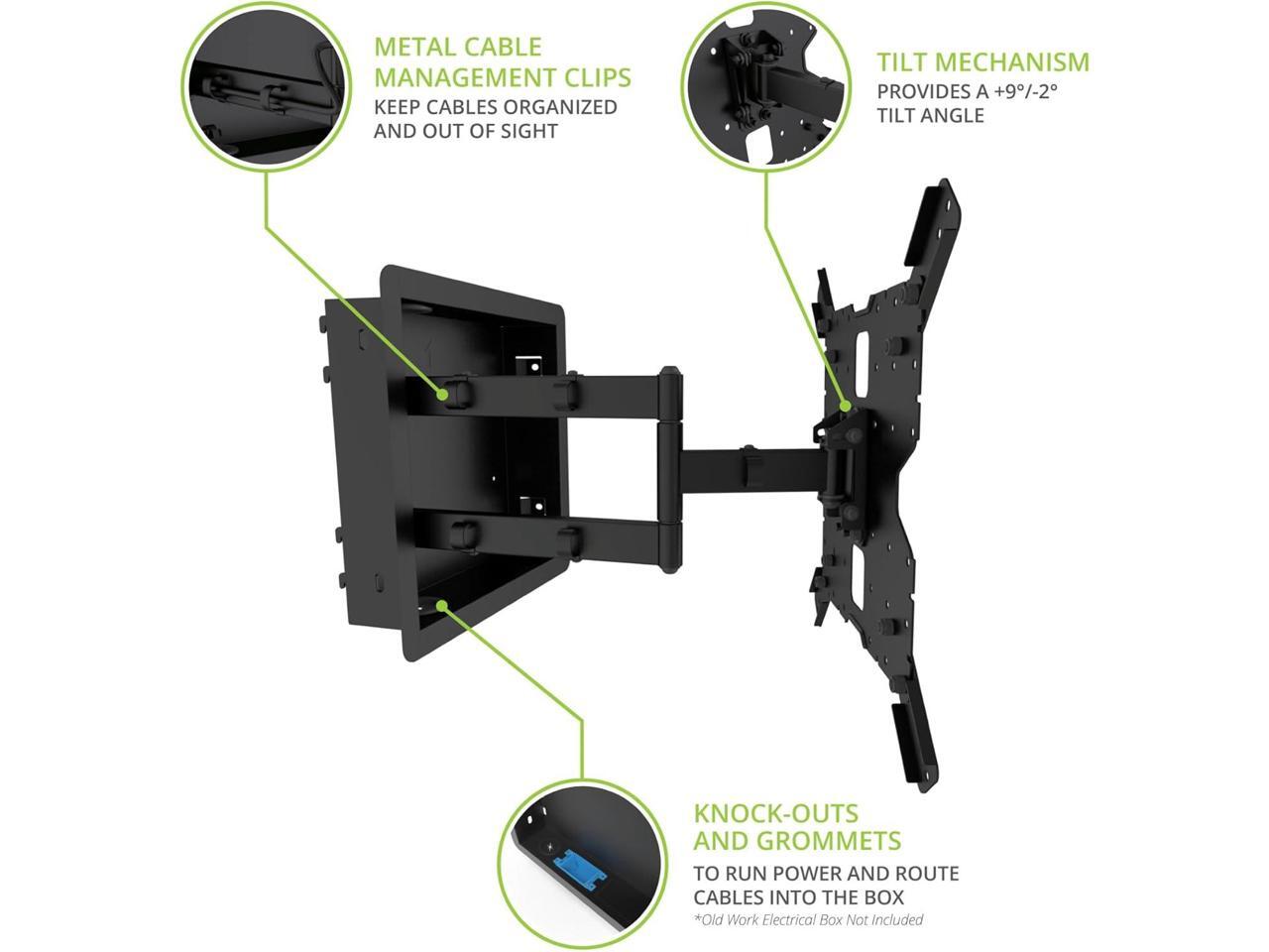- CONTRACTOR FRIENDLY: A foldable, in-wall template for new construction can be temporarily placed between studs letting contractors plan cabling and drywall while the mount sits safely in its packaging until needed