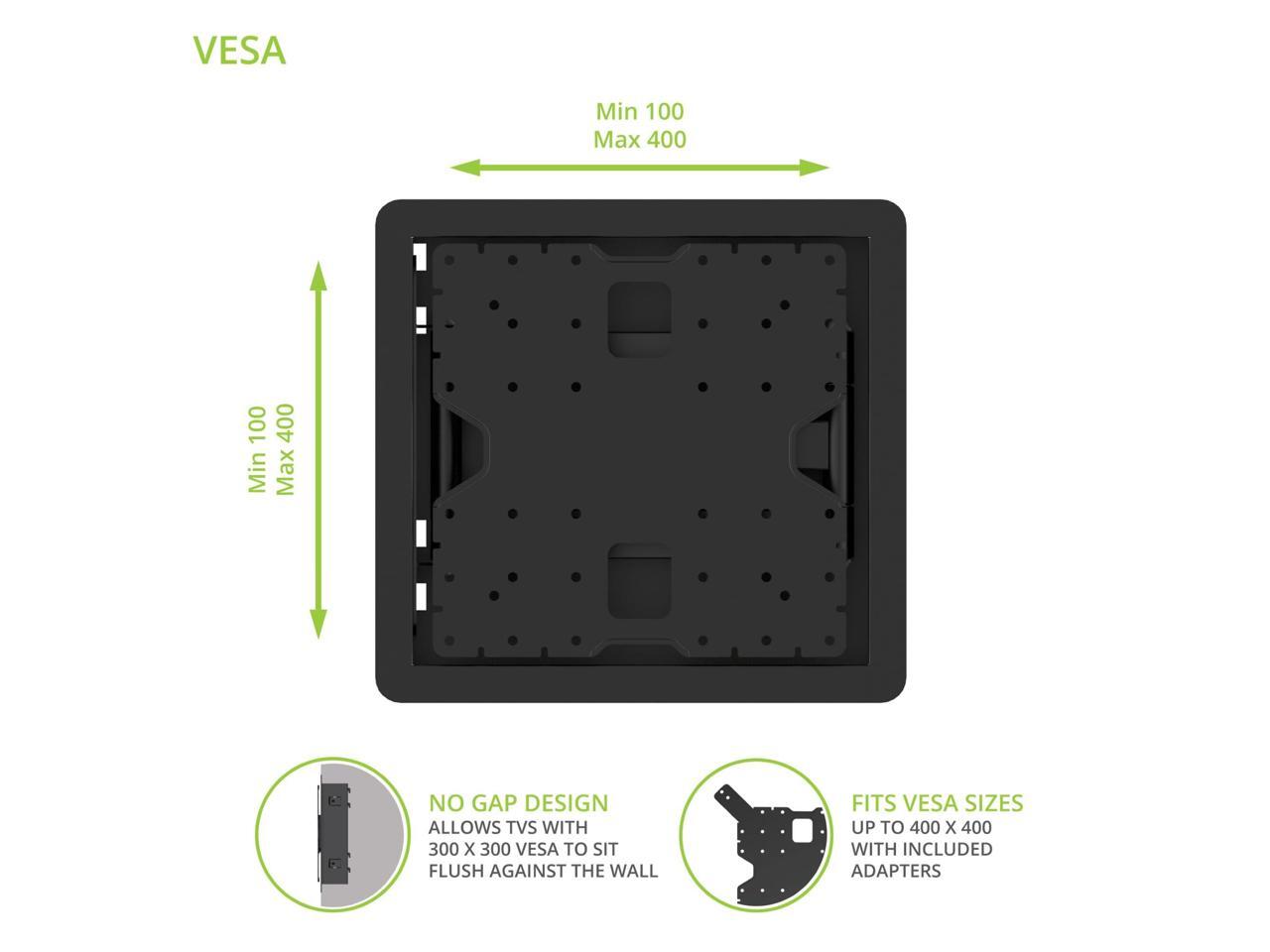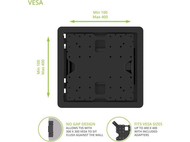 - PERFECTLY FLUSH: R400 is a true zero gap TV mount that allows TVs with a VESA pattern of 300x300 or less to sit directly against the wall for a completely flush look. The profile only increases to 0.3 if using the 400 mm VESA extensions
