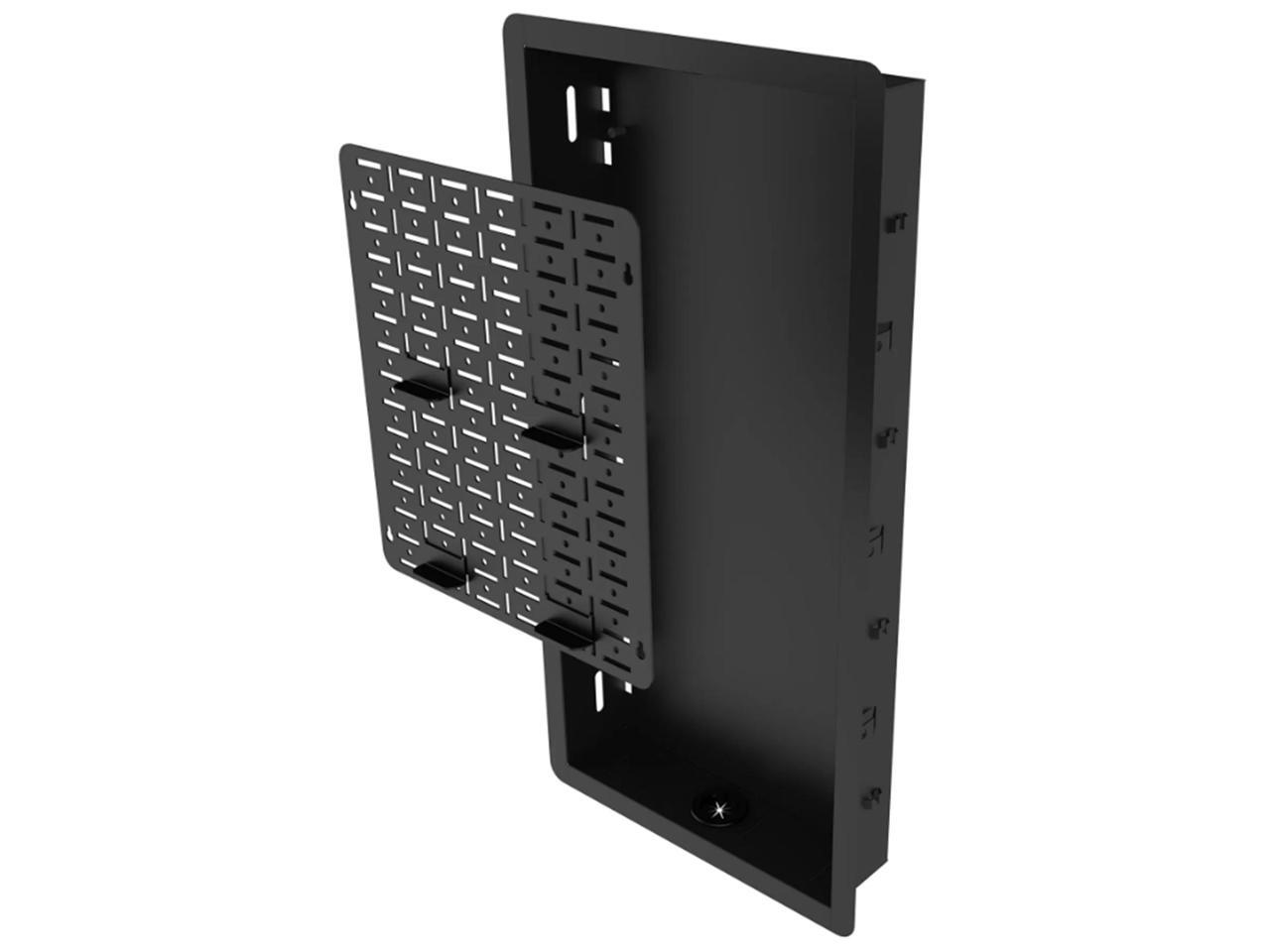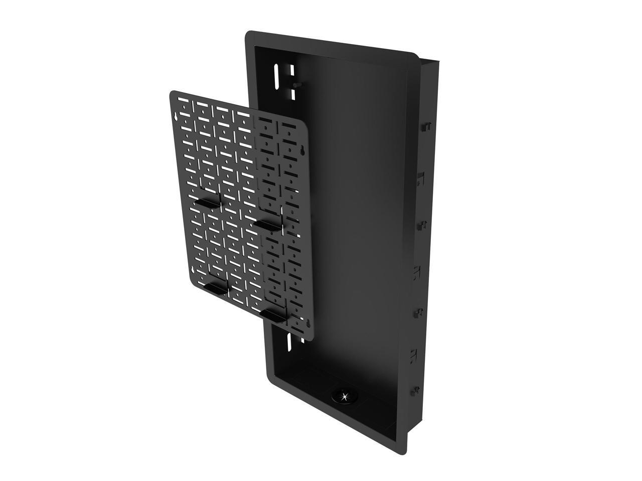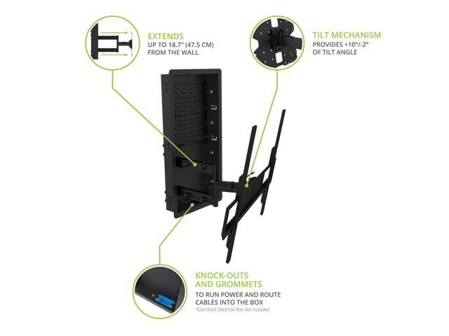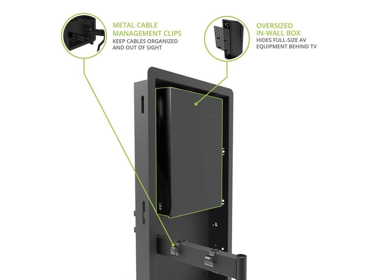 - OUT OF SIGHT The recessed box is deep enough to store streaming boxes and other small AV accessories behind the TV for a clean, modern setup