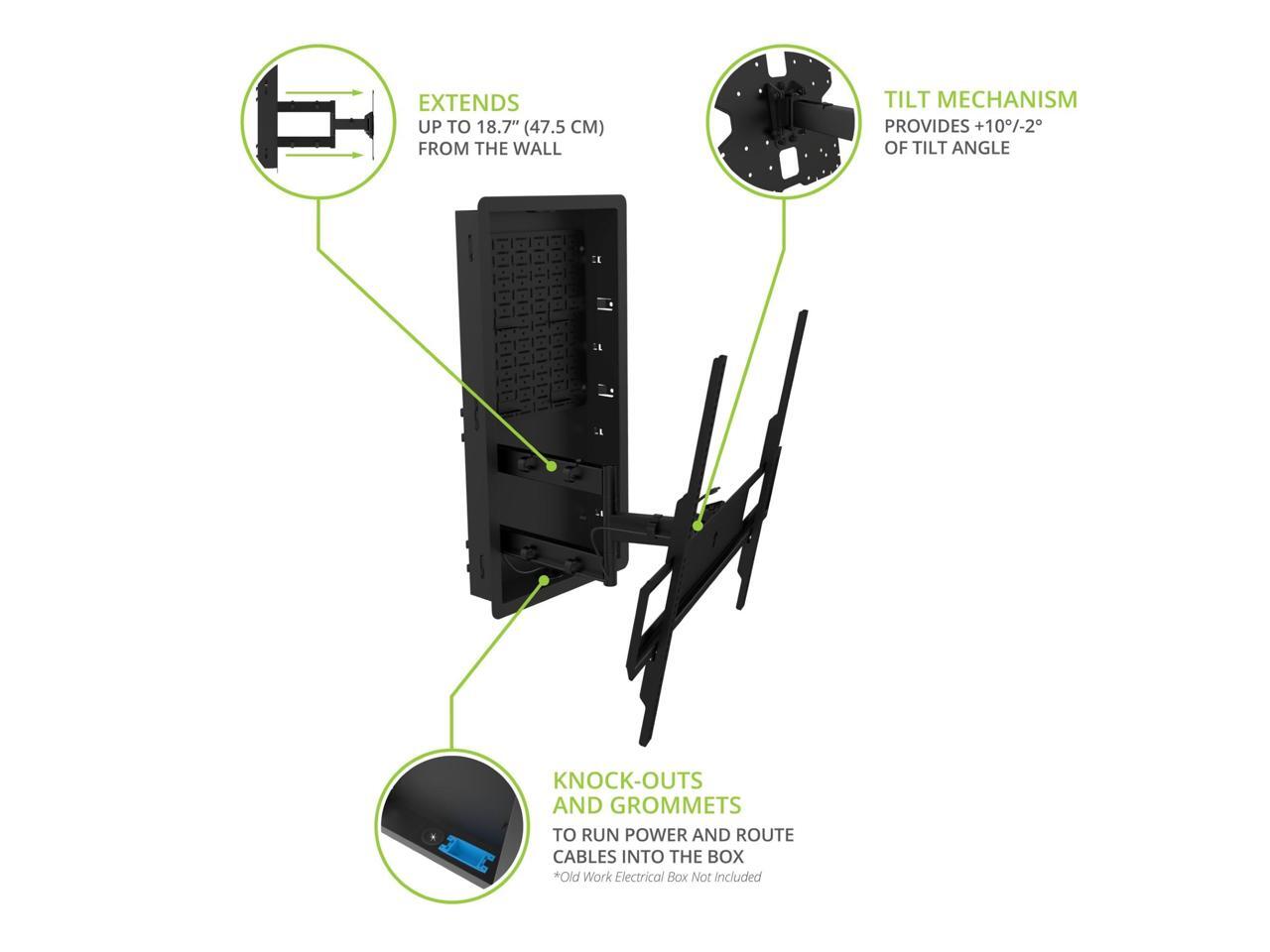 - CONTRACTOR FRIENDLY A foldable, in-wall template for new construction can be temporarily placed between studs letting contractors plan cabling and drywall while the mount sits safely in its packaging until needed