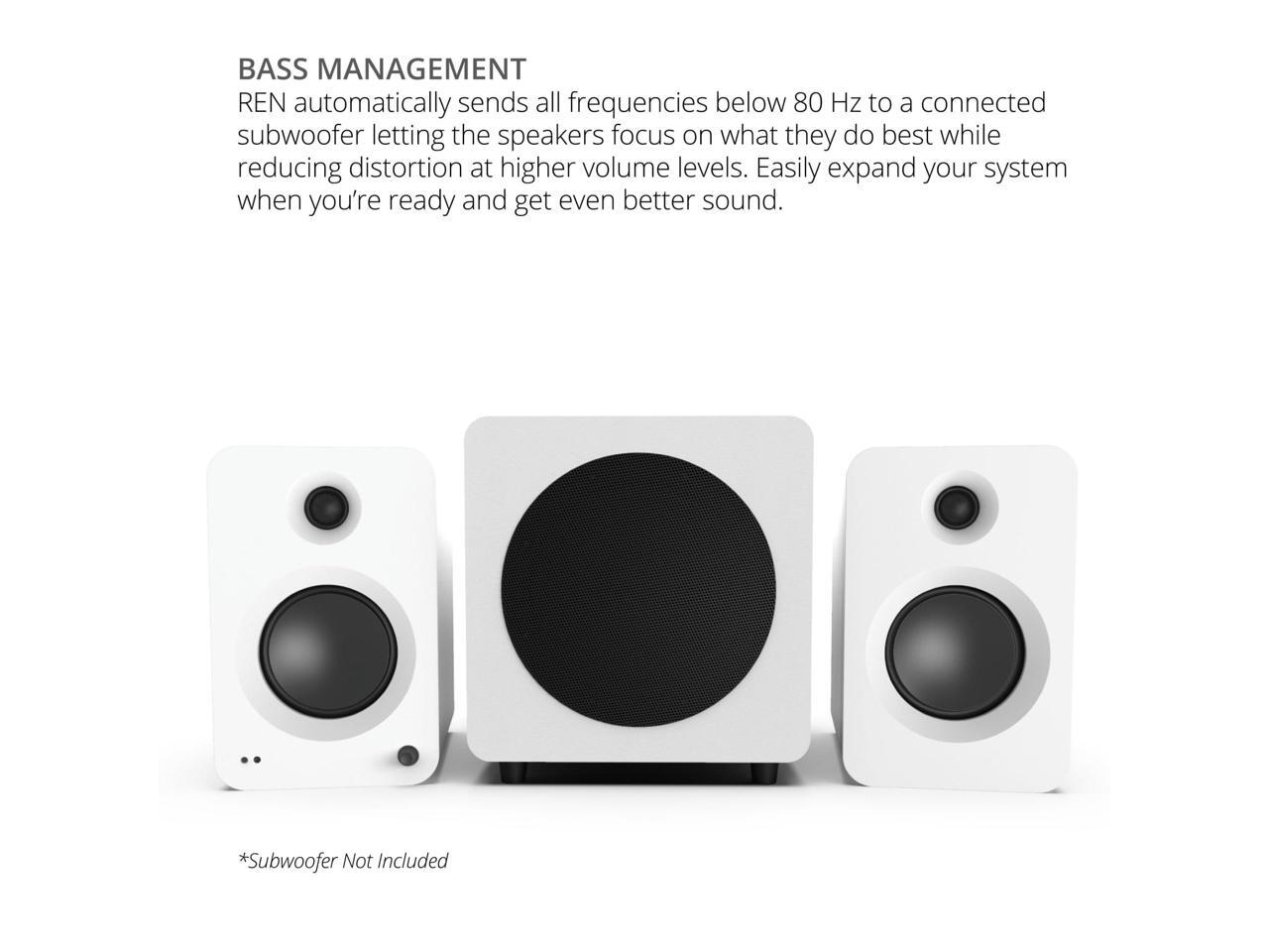 - BASS MANAGEMENT: When a subwoofer is plugged into RENs sub output, it automatically sends all frequencies below 80 Hz to the sub letting the speakers focus on what they do best while reducing distortion at higher volume levels.