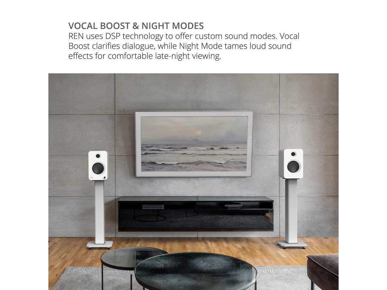 - VOCAL BOOST AND NIGHT MODE: REN is DSP-controlled, allowing for custom sound modes like Vocal Boost and Night Mode to improve quiet dialogue and soften loud sound effects when watching movies at night.
