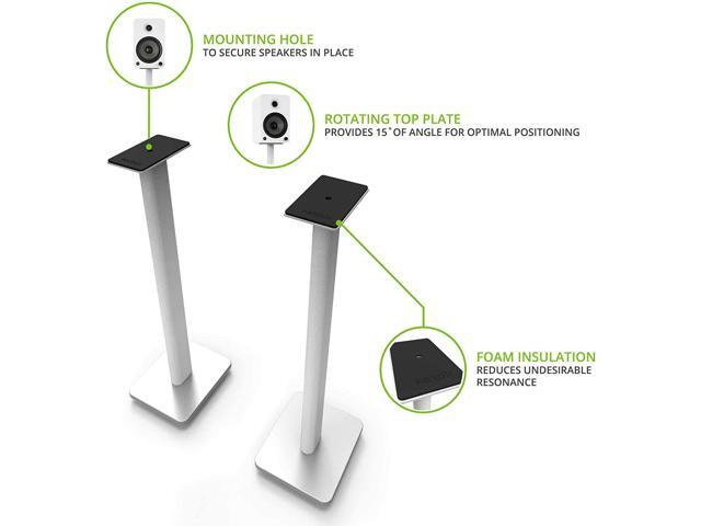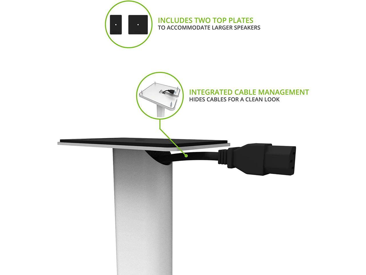- Features rotating top plates with mounting holes to secure compatible speakers in place