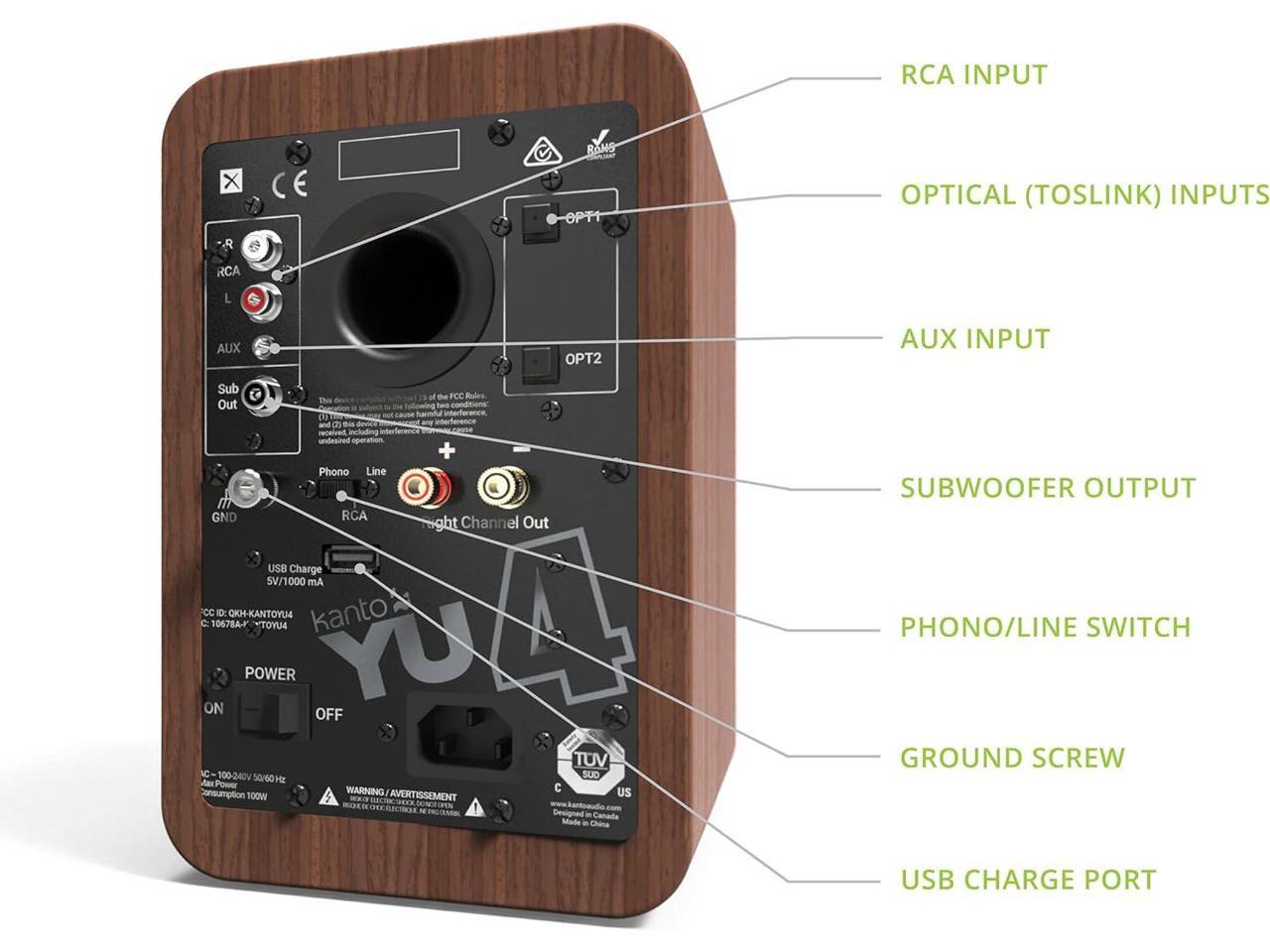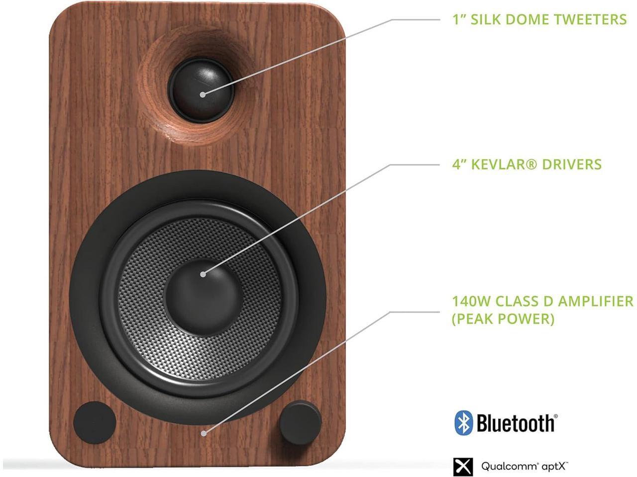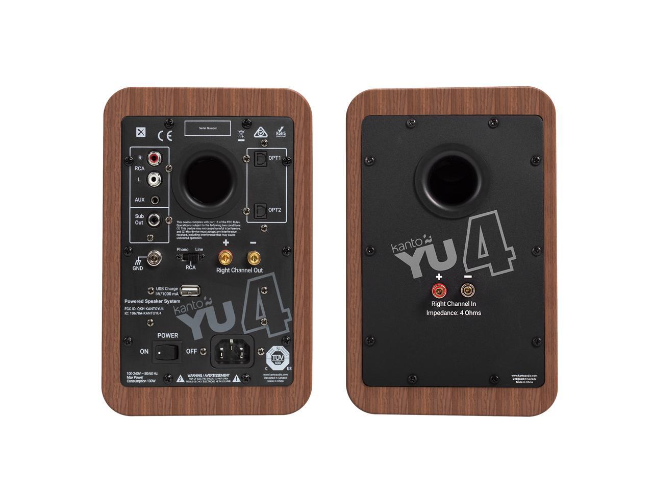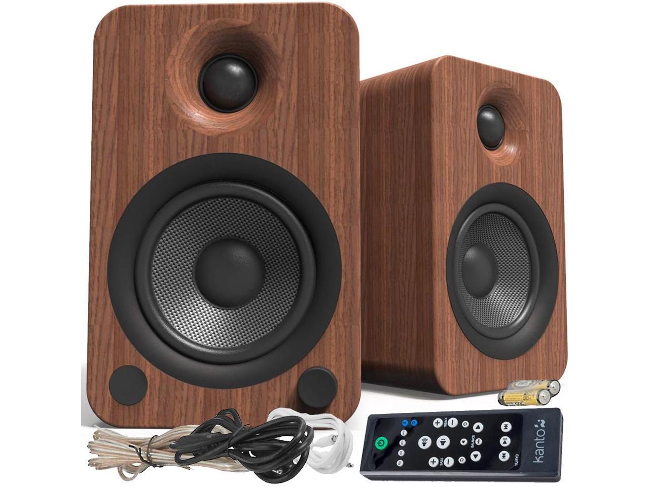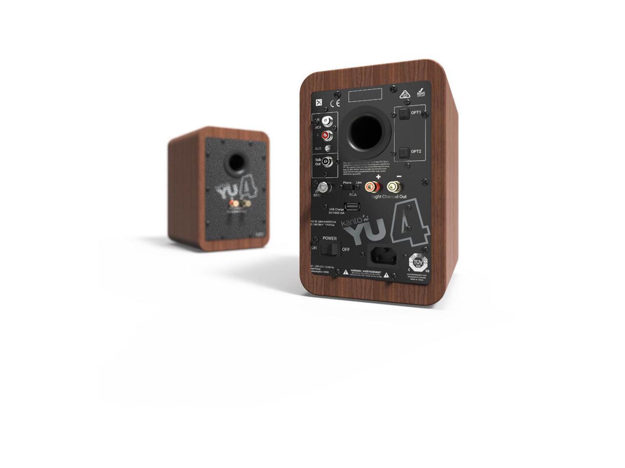 Kanto YU4 Powered Bookshelf Speakers with Built-In Bluetooth, 1" Silk Dome Tweeter and 4" Kevlar Woofer - Pair (Walnut)