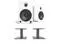 Kanto YU6MW 200W Bookshelf Speakers - 1" Silk Dome Tweeters - 5.25" Kevlar Drivers - Class D Amp - 200W Peak Power - 50Hz-20kHz Frequency Response - 3.5 mm AUX - RCA with Phono Switch - 2 Optical - Bluetooth - Subwoofer Output - USB Charge Port - Remote - 16' Speaker Wire - 6.5 ' AUX Cable - Rubber Feet Included - Mounting Capable - ( 6.90"W x 8.10"D x 10.70"H ) - (Matte White) with Kanto SP6HD 6" Fixed-Height Desktop Speaker Stands - 30 Degree Rotating Top-Plates - Heavy Steel - Foam Padding - Cable Management - 6" Height - Pairs Great with YU4, YU6, and TUK - Compatible with Most Small/Medium Bookshelf Speakers - Clean Design - 4" Top-Plate - 7" Top-Plate - ( 7.00"W x 8.50"D x 6.00"H ) - (Black)