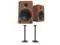 Kanto YU6WALNUT 200W Bookshelf Speakers - 1" Silk Dome Tweeters - 5.25" Kevlar Drivers - Class D Amp - 200W Peak Power - 50Hz-20kHz Frequency Response - 3.5 mm AUX - RCA with Phono Switch - 2 Optical - Bluetooth - Subwoofer Output - USB Charge Port - Remote - 16' Speaker Wire - 6.5 ' AUX Cable - Rubber Feet Included - Mounting Capable - ( 6.90"W x 8.10"D x 10.70"H ) - (Walnut) with Kanto SP26PL 26" Fixed-Height Speaker Stands - 30 Degree Rotating Top-Plates - Foam Padding - Heavy-Duty Steel - Cable Management - Carpet Spikes - Rubber Feet - 7" Top-Plates - 4" Top-Plates - Matches with YU4 and YU6 Series Speakers - Compatible with Most Small/Medium Bookshelf Speakers - ( 8.90"W x 10.60"D x 26.00"H ) - (Black)