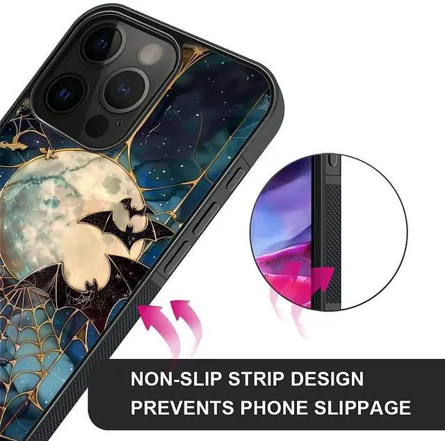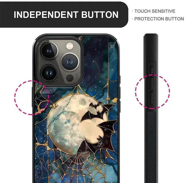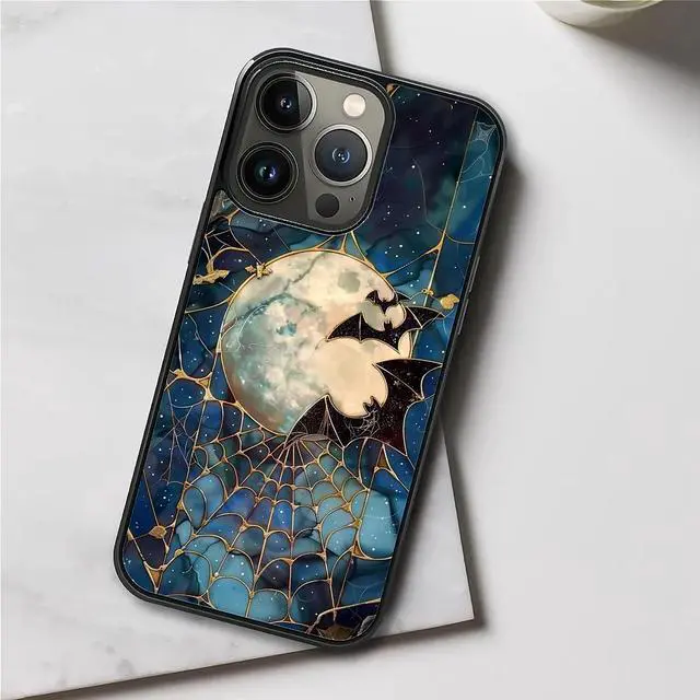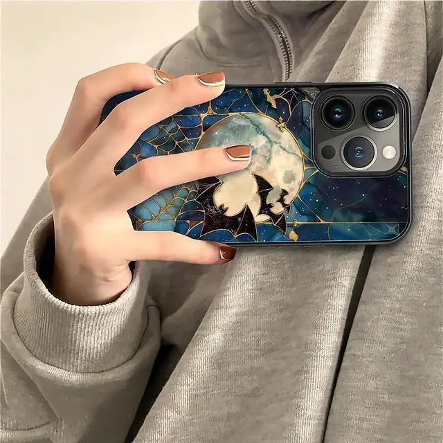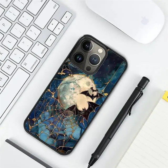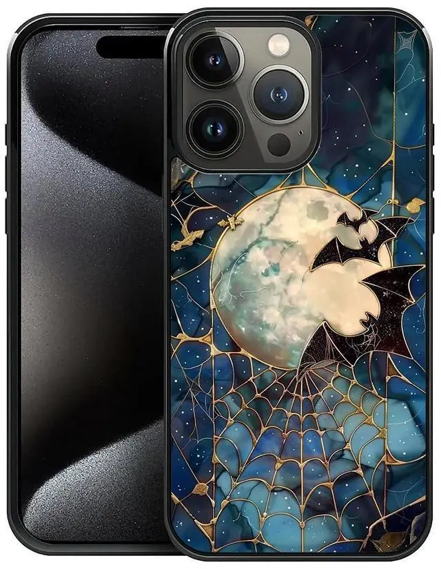 Compatible with iPhone 16 Pro Max Case, Stained Glass Bats Spooky Moon for Men Woman, Soft Silicone Shock-Proof and Skid-Proof for Protective Case for iPhone 16 Pro Max
