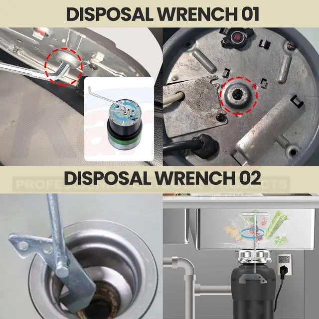 - This sink garbage disposal wrench features an easy-turn design that provides ample leverage to effortlessly remove plastic wrap or debris. The distinct designs of both wrenches address most sink clogging issues.