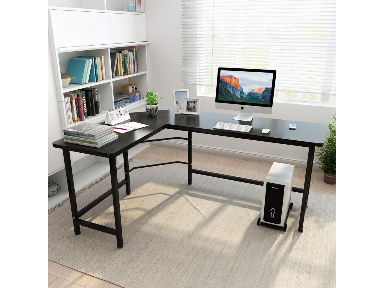 If you are looking for a desk for your office, this L-shaped desktop computer desk is a good choice for you. It's made of high-quality P2 Wood and iron, which is sturdy, stable and durable. Its design of 90° L-shaped is more spacious than normal design. And it also uses bevel edge angle design and M-style buckle design, which is easier to assemble. In addition, its design of humanized foot position, adjustable leg pads and safety corners are convenient and safe for you.