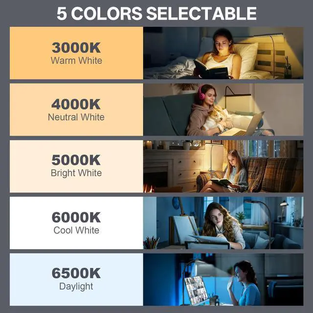 (3000K-6500K) From Warm, Relaxing Light to Bright, Focused Light.
