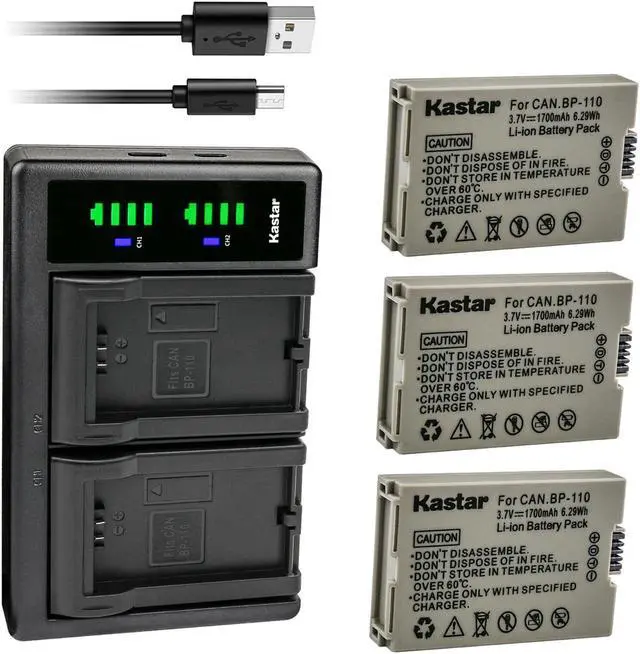 Kastar BP-110 Fully Decoded Battery 3-Pack and LTD2 USB Charger Compatible with Canon VIXIA HF R28 HFR28, VIXIA HF R27 HFR27, VIXIA HF R26 HFR26, VIXIA HF R206 HFR206, VIXIA HF R205 HFR205 Camera