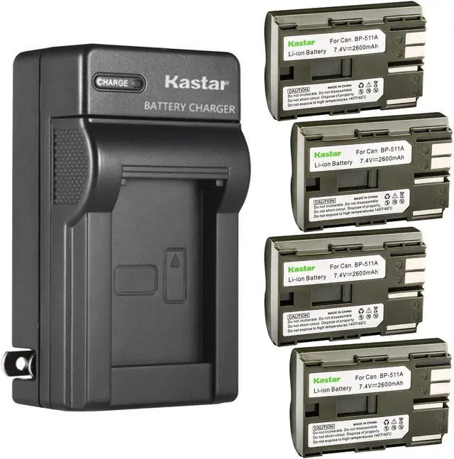 Kastar 4 Pack BP-511 BP-511A Battery and AC Wall Charger Compatible with Canon MV550 MV550i DM-MV590 MV590 DM-MV600 MV600 MV600i DM-MV630i MV630i DM-MV650i MV650i DM-MV690 MV690 DM-MV700 MV700 Cameras