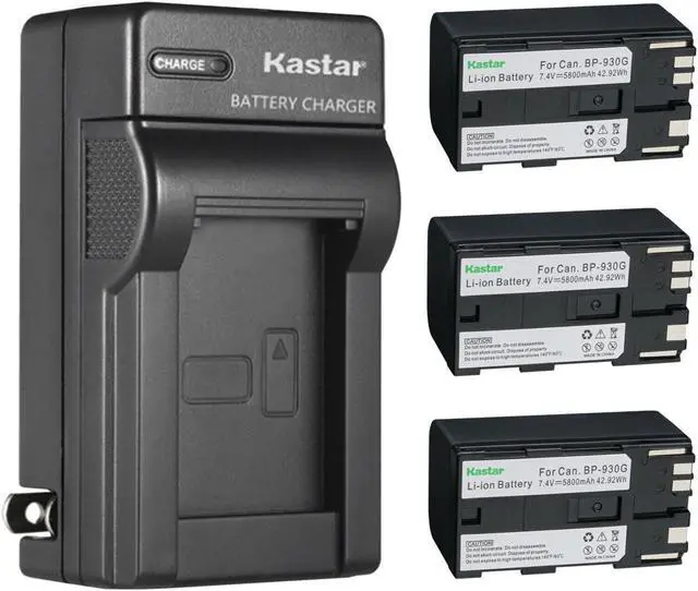 Kastar 3-Pack BP-930G Battery and AC Wall Charger Replacement for Canon UC-X45 UC-X50 UC-X55 V40 V40Hi V50Hi V60Hi V65Hi V72 V75Hi V400 V420 V500 V520 XF100 XF105 XF200 XF205 XF300 XF305 Camera