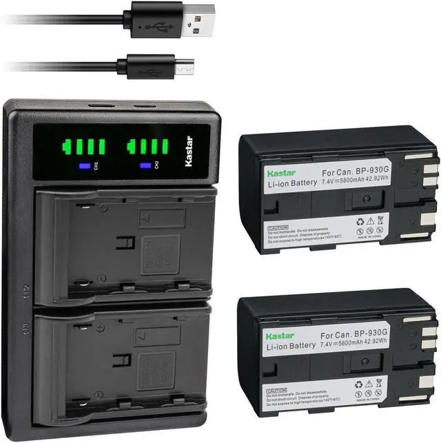 Kastar 2-Pack BP-930G Battery and LTD2 USB Charger Compatible with Canon XF100 XF105 XF200 XF205 XF300 XF305 XH-G1 HDV XH-G1S XH-G1S HD XL-H1A XL-H1S XL-H1S HD XL-1 XL-1S XL-2 Camera, BP-930 BP-935