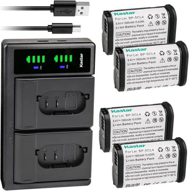 Kastar 4-Pack Battery and LTD2 USB Charger Replacement for Leica BP-SCL4 16062 Rechargeable Lithium-Ion Battery, Leica BC-SCL4 Charger, Leica S, Leica Q2, Leica SL Series, Leica SL Typ 601 Camera