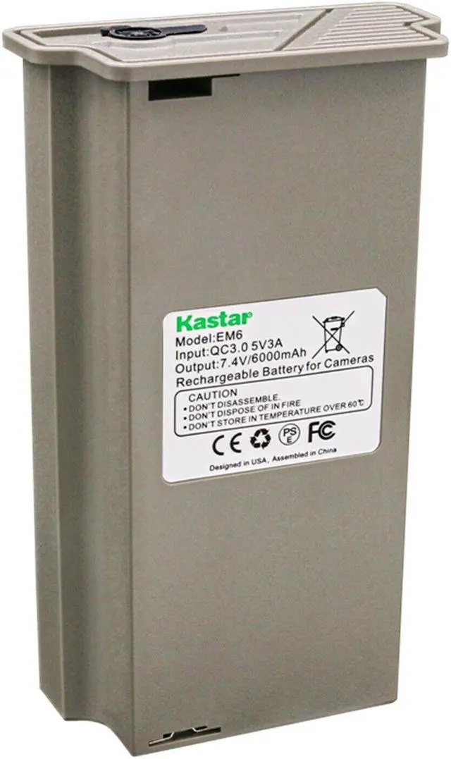 • Specification: Battery Type: Lithium-ion; Battery Voltage: 7.4V; Battery Capacity: 6000mAh. Type-C Quick charging: Charge the battery with the included Type-C cable. Smart charging LED indicator: Red light is charging, Green light is fully charged.