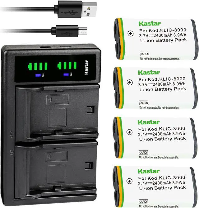 Kastar 4-Pack KLIC-8000 Battery and LTD2 USB Charger Replacement for Kodak Z885, Z1012 IS, Z1015 IS, Z1085 IS, Z1485 IS, Z612 IS, Z712 IS, Z812 IS, Z8612 IS, Pocket Video Camera ZX1 Digital Camera