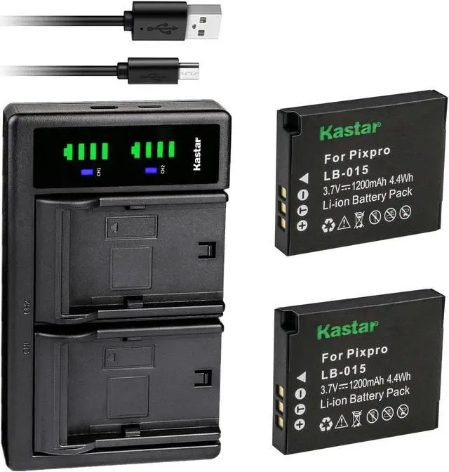 Kastar 2-Pack Battery and LTD2 USB Charger Compatible with Kokad LB-015 Rechargeable Lithium-ion Battery and Kokad PIXPRO WPZ2 Digital Camera, Kokad Pixpro WPZ2 Rugged Waterproof Action Camera