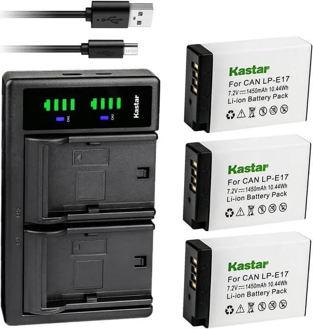 Kastar 3-Pack Battery and LTD2 USB Charger Replacement for Canon LP-E17 LPE17, 9967B02 Battery, Canon EOS RP, EOS R8, EOS R10, EOS R50, EOS R100 Mirrorless Camera, KISS X8i, KISS X9i, Rebel SL2 Camera