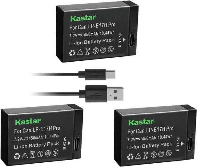 Kastar 3-Pack LP-E17H Pro Battery W/ Type-C Cable Compatible with Canon LP-E17 LP-E17H, 9967B02 Battery, Canon EOS 750D, EOS 760D, EOS 800D, EOS 850D, EOS 8000D, EOS RP, EOS R10 Mirrorless Camera