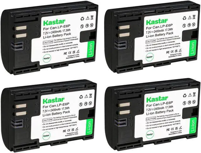 Kastar 4-Pack LP-E6P Rechargeable High-amperage Lithium-ion Battery Replacement for Canon LPE6P Battery, Canon LC-E6 and Canon LC-E6E battery chargers, Canon EOS R5 Mark II Mirrorless Camera